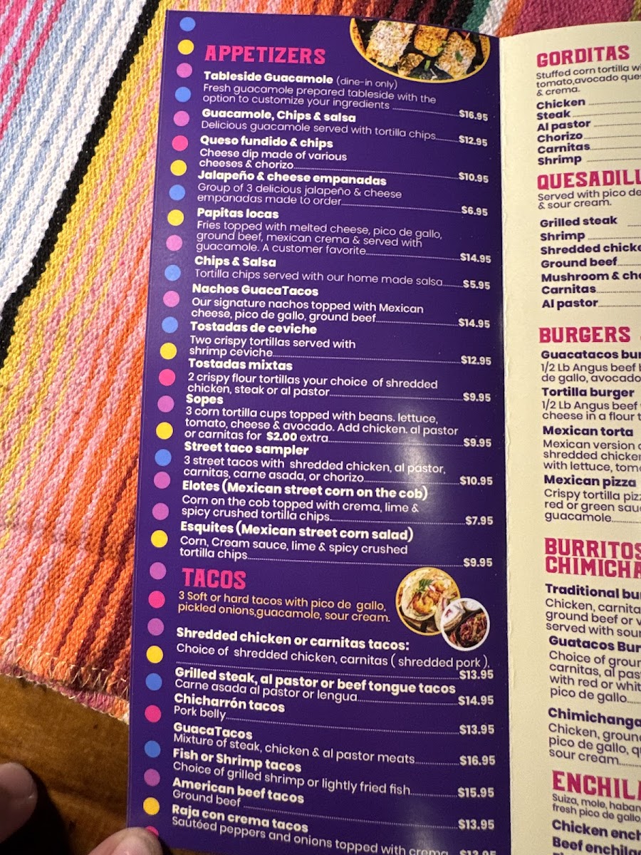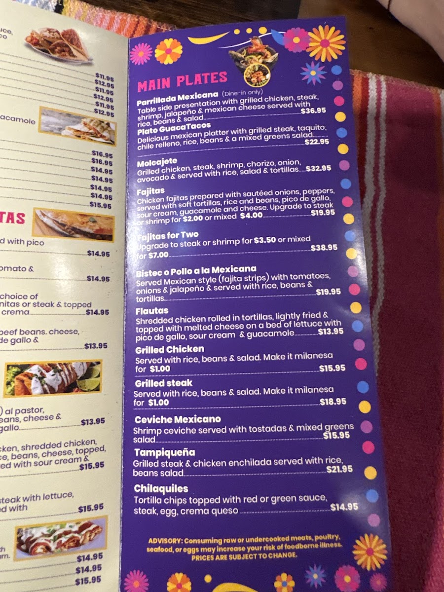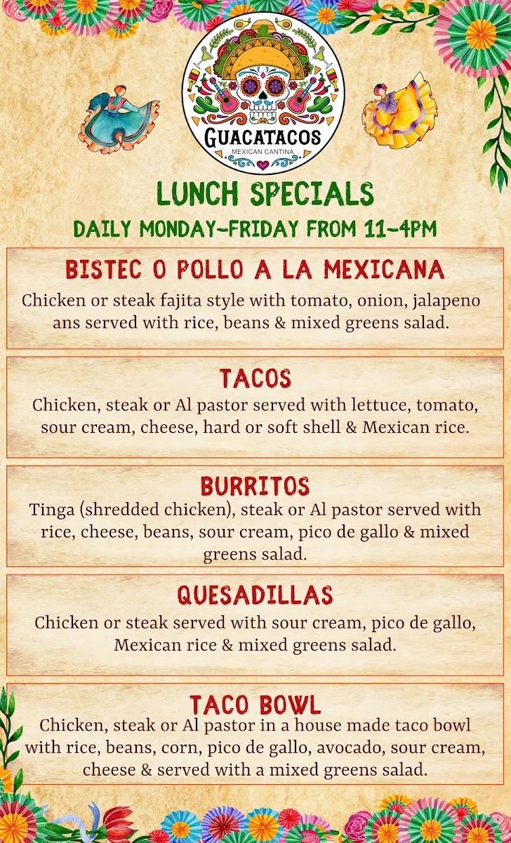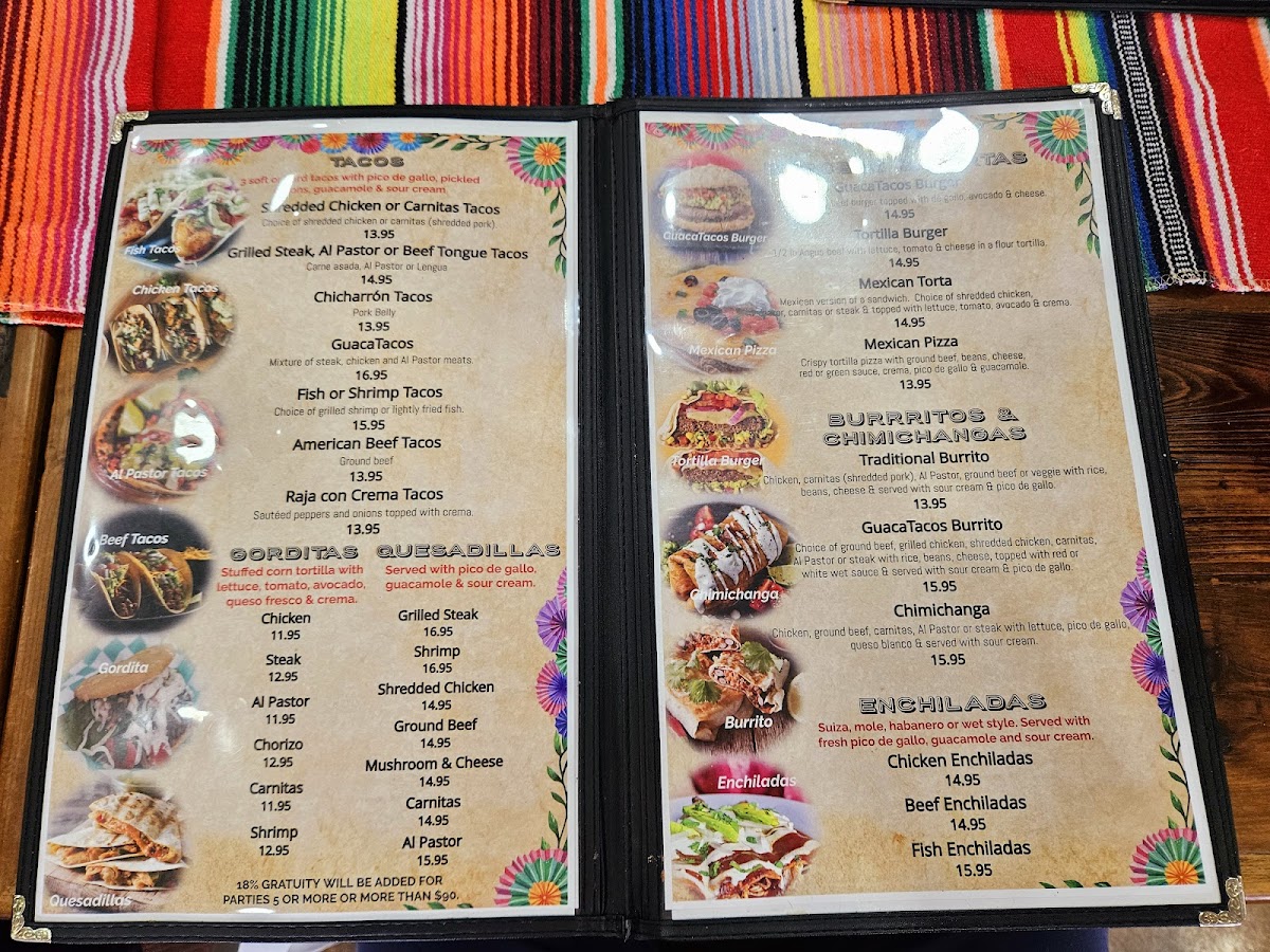 Suiza, mole, habanero or wet style. Served with fresh pico de gallo, guacamole and sour cream.